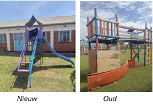 De speeltoestellen op het terrein worden opgeknapt en voor een deel vernieuwd. Dit was hard nodig en op dit moment worden de laatste werkzaamheden uitgevoerd, zodat de kinderen weer veilig buiten kunnen spelen. Op de foto zijn de nieuwe en oude glijbaan te zien. De kinderen zijn erg blij met de speeltoestellen! Het is mogelijk gemaakt door een gift van De Groot Luchtkanalen, wij zijn dankbaar dat we ook van buiten onze regio financiële ondersteuning ontvangen.